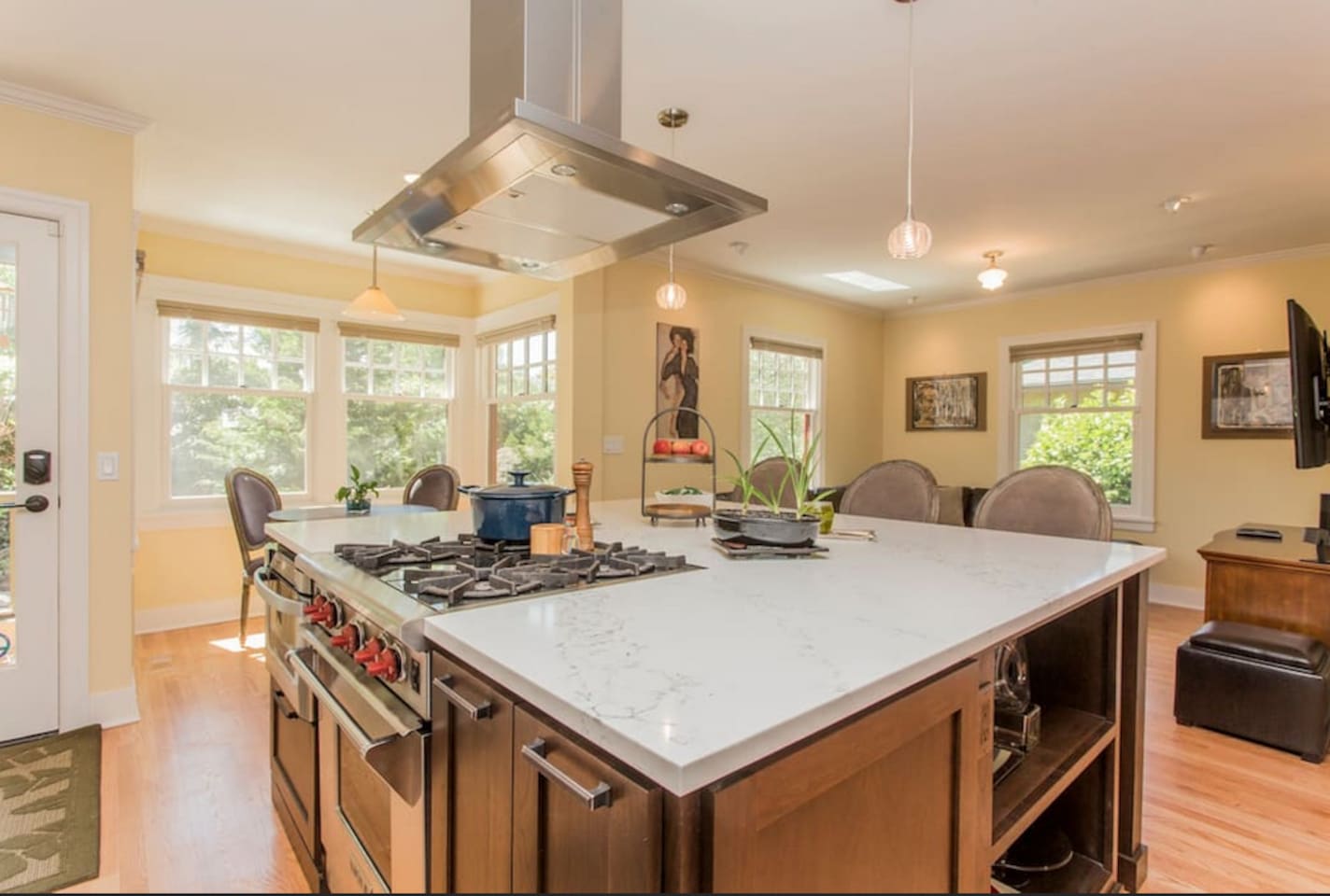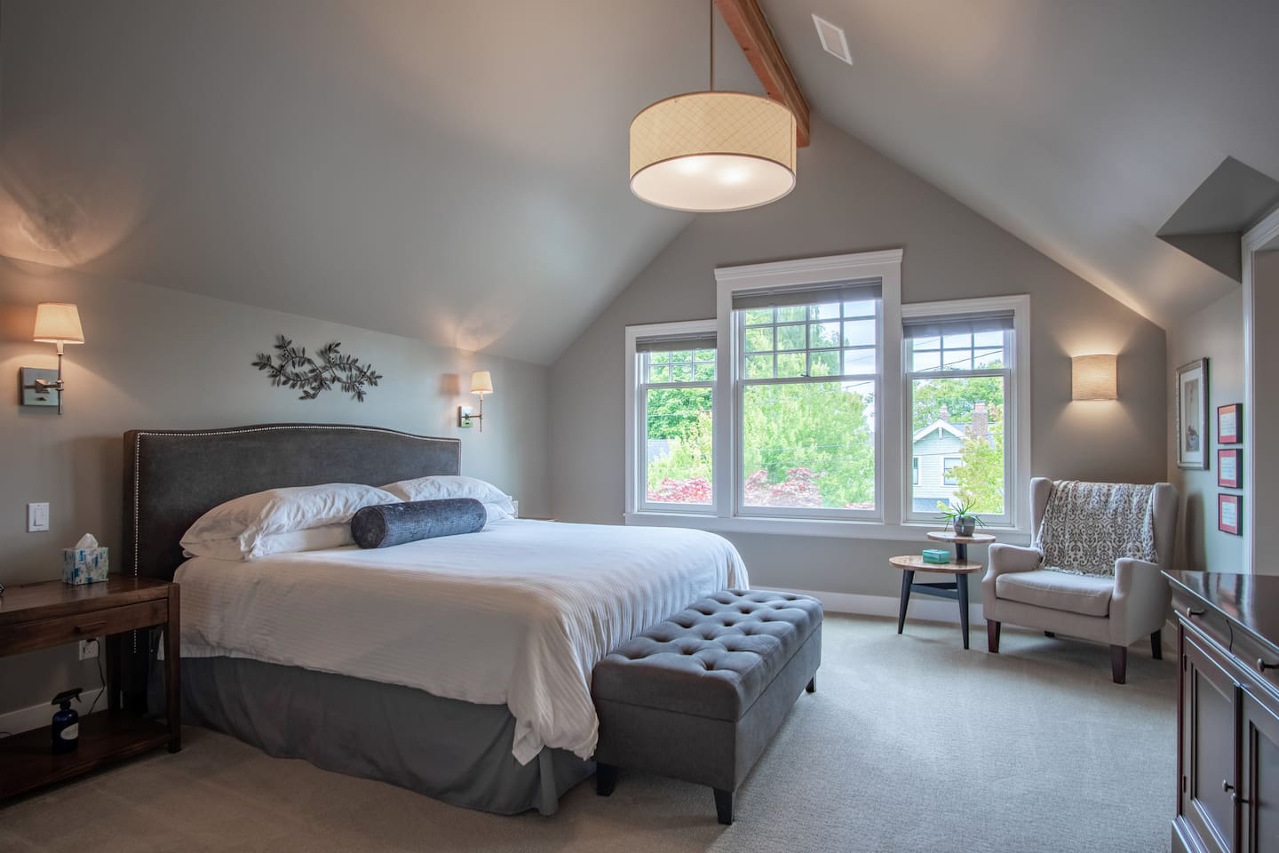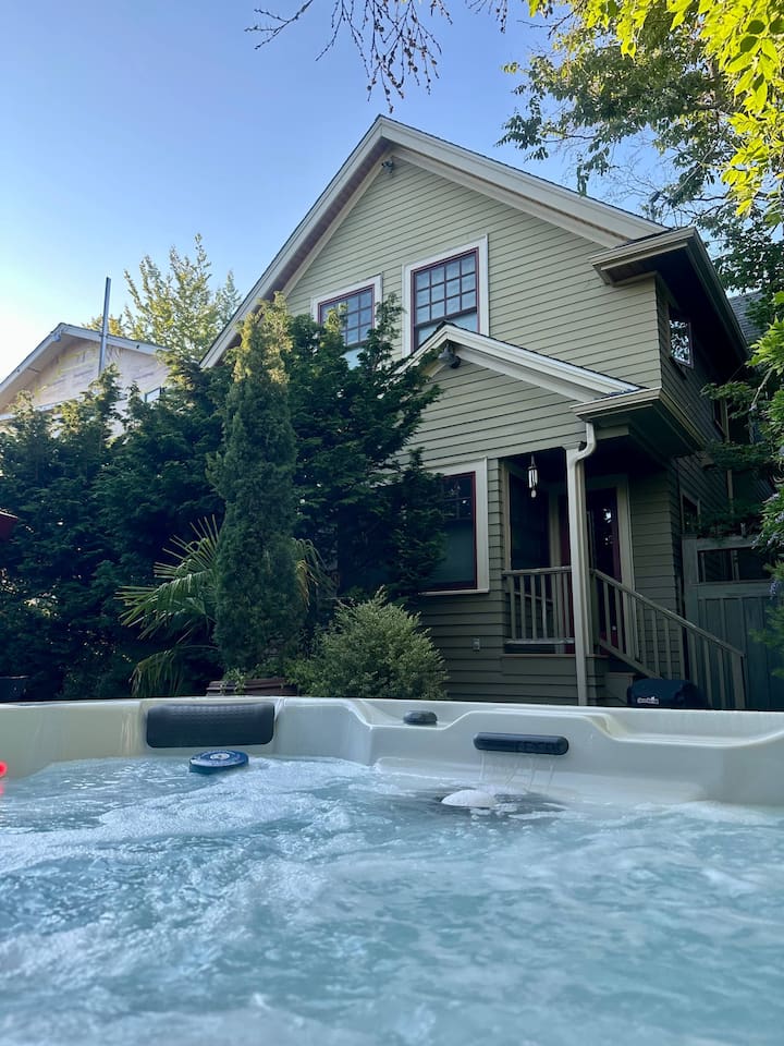 Large groups will rest easy at this newly renovated 5-bedroom luxury home with private guest suite. This gem is centrally located in one of Seattle’s most charming and desirable neighborhoods. Walk along quaint, tree-lined streets to restaurants and shopping on Queen Anne Avenue or catch the bus a block away for a quick 10-minute ride to the popular Seattle Center and downtown. Afterwards, enjoy dinner or a glass of wine on the beautiful fenced-in outdoor patio or a soak in the hot tub.