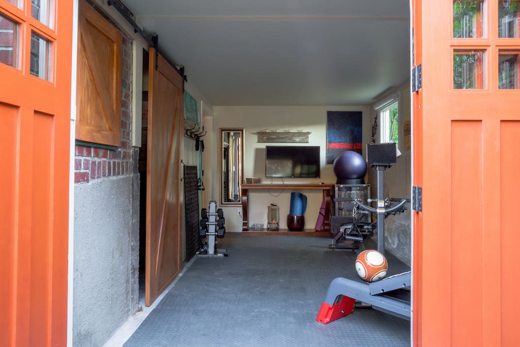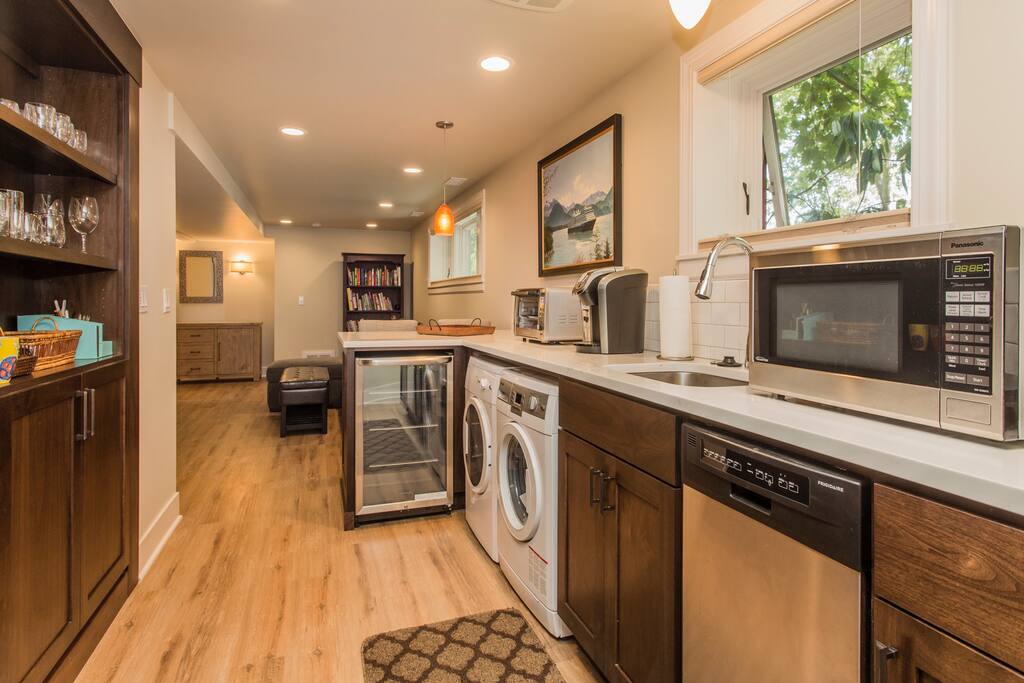 INSIDE THE HOUSE This new renovated house included the main house and private guest suite. A total of five bedrooms, four bathrooms, two kitchens and amenities that will give you and your guests a total five star stay. Inside, an open concept living area shares space with the kitchen and dining rooms. Hardwood floors and classic furnishings characterize this home, with a large flat-screens in most of the rooms. Outside awaits your private courtyard. Sit outside with a glass of wine while the sun sets over the Seattle skyline and soak away the day! Enjoy a warm soak in the swim spa - it's 19' long for an around aquatic workout - it's large enough for everyone to soak. Towels along with kid and adult robes for everyone. For our guest's security, four outside cameras have been placed at each entrance of the house. The bedroom has a large king bed and patio access. If you can’t bear to leave work behind completely, you’ll appreciate the desk and chair that share the spacious room. An en-suite bathroom has a walk in shower and single vanity.